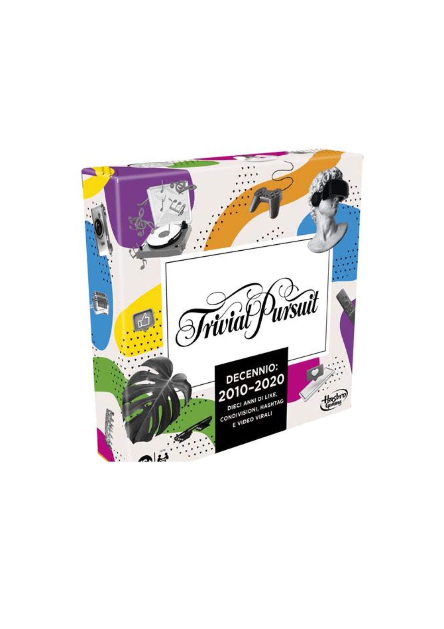 Metti a frutto anni di like, hashtag e condivisioni con domande relative a programmi degni di una maratona TV, tormentoni estivi, titoloni da prima pagina, meme indimenticabili e molto altro dal decennio 2010-2020. Credi di essere un esperto della cultura popolare a partire dall'anno 2010? Ora potrai dimostrarlo! Il gioco da tavolo Trivial Pursuit Decennio: 2010 - 2020 presenta domande di cultura popolare divise in 6 categorie tra cui Playlist, Maratona TV, #Cultura, Ultima ora, Chiudete internet e Game on. Riunisci amici e famigliari per una divertente serata a quiz. Se non vuoi usare il tabellone, gioca utilizzando solo le carte! Il gioco da tavolo Trivial Pursuit Decennio: 2010 - 2020 è incluso all'interno di una comoda scatola da viaggio.